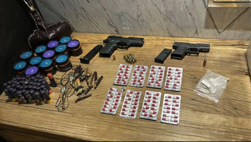 Operasyon kapsamında yapılan aramalarda ruhsatlı, ruhsatsız ve kurusıkı tabanca, çeşitli fişekler, 8 tablet uyuşturucu hap, kristal şeklinde uyuşturucu, 5 likit uyuşturucu, içerisinde uyuşturucu olduğu değerlendirilen 51 kartuş, çok sayıda aparat ile uyuşturucu madde öğütücüsü, üstünde ve altında 100'er dolar bulunan boş kağıtlarının da yer aldığı deste ile orta kısımları kesik 19 sahte dolar ele geçirildi.