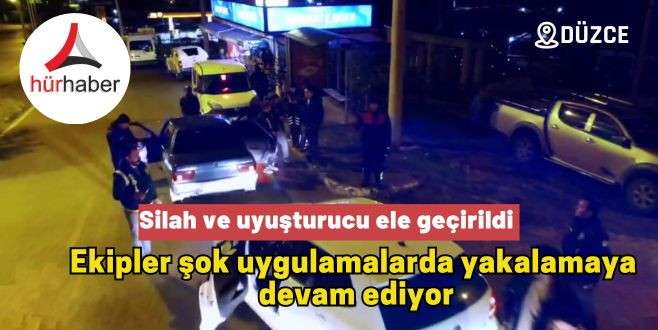 Düzce’nin Akçakoca ilçesinde polis ekipleri tarafından yapılan dron destekli, narkotik köpekli şok uygulamada kurusıkı silah ve uyuşturucu madde ele geçirildi.