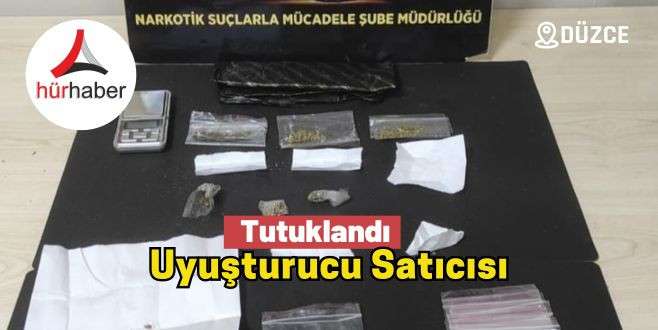 Düzce Cumhuriyet Başsavcılığı'nın uyuşturucu madde ticaretinin önlenmesine yönelik yürüttüğü soruşturma çerçevesinde, bugün Narkotik Suçlarla Mücadele ve Asayiş Şube Müdürlüğü ekipleri Koçyazı ve Derelitütüncü Mahallesinde çalışma yaptı. Yapılan çalışmada M.E. (47) isimli şahsa ait; 15 gram metamfetamin, 10 gram esrar, hassas terazi ve 32 parça uyuşturucu paketlememek için kullanılan şeffaf kilitli poşet ele geçirildi. Adli makamlara sevk edilen M.E. isimli şüpheli şahıs çıkarıldığı Sulh Ceza Mahkemesince tutuklandı.