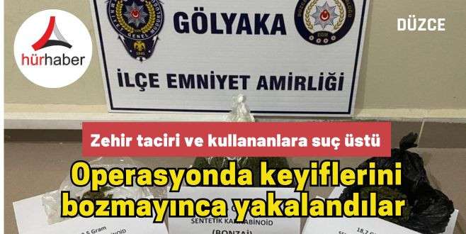 Gölyaka İlce Emniyet Müdürlüğü ekipleri A.G. isimli şahsın uyuşturucu madde ticareti yaptığı istihbaratına ulaştı. Ekipler, A.G.ye ait ikamet önünde yaptıkları fiziki takipte E.B. isimli şahsında A.G.'den uyuşturucu madde aldığını belirledi. A.G.ye ait adresin çevresinde yapılan araştırmada evin önünde duran bir aracı daha sonra durduran ekipler E.K. isimli şahsın A.G. den 18.7 gram uyuşturucu maddesi aldığını tespit etti. Yapılan çalışmalar sonrası Cumhuriyet Başsavcılığından arama izni alan ekipler A.G.'ye ait evde yaptıkları aramada tek parça halinde 249.4 gram bonzai olduğu değerlendirilen madde ele geçirdi. Ekipler ayrıca yere dökülmüş vaziyette yine 2.1gram uyuşturucu maddeyi de yakaladı.