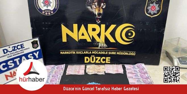 Düzce’de Narkotik Suçlarla Mücadele Şube Müdürlüğü ekipleri tarafından durdurulan araçtan 215 adet uyuşturucu hap ele geçirildi 2 kişi gözaltına alındı.Düzce Cumhuriyet Başsavcılığımızca yürütülmekte olan soruşturmada Narkotik Suçlarla Mücadele Şube Müdürlüğünce yürütülen çalışmada Düzce merkez Darıcı Mahallesi Bayrak Caddesi üzerinde durumundan şüphelenilerek durdurulan İstanbul trafiğine kayıtlı araçta bulunan S.G. ve O.Ş. isimli şahısların üzerinde yapılan aramada; 215 adet Extacy hap ve suçtan elde edildiği değerlendirilen 2 bin 165 TL para ele geçirildi. Şüpheli şahıslar hakkında uyuşturucu madde imal ve ticareti suçundan işlem yapıldı.