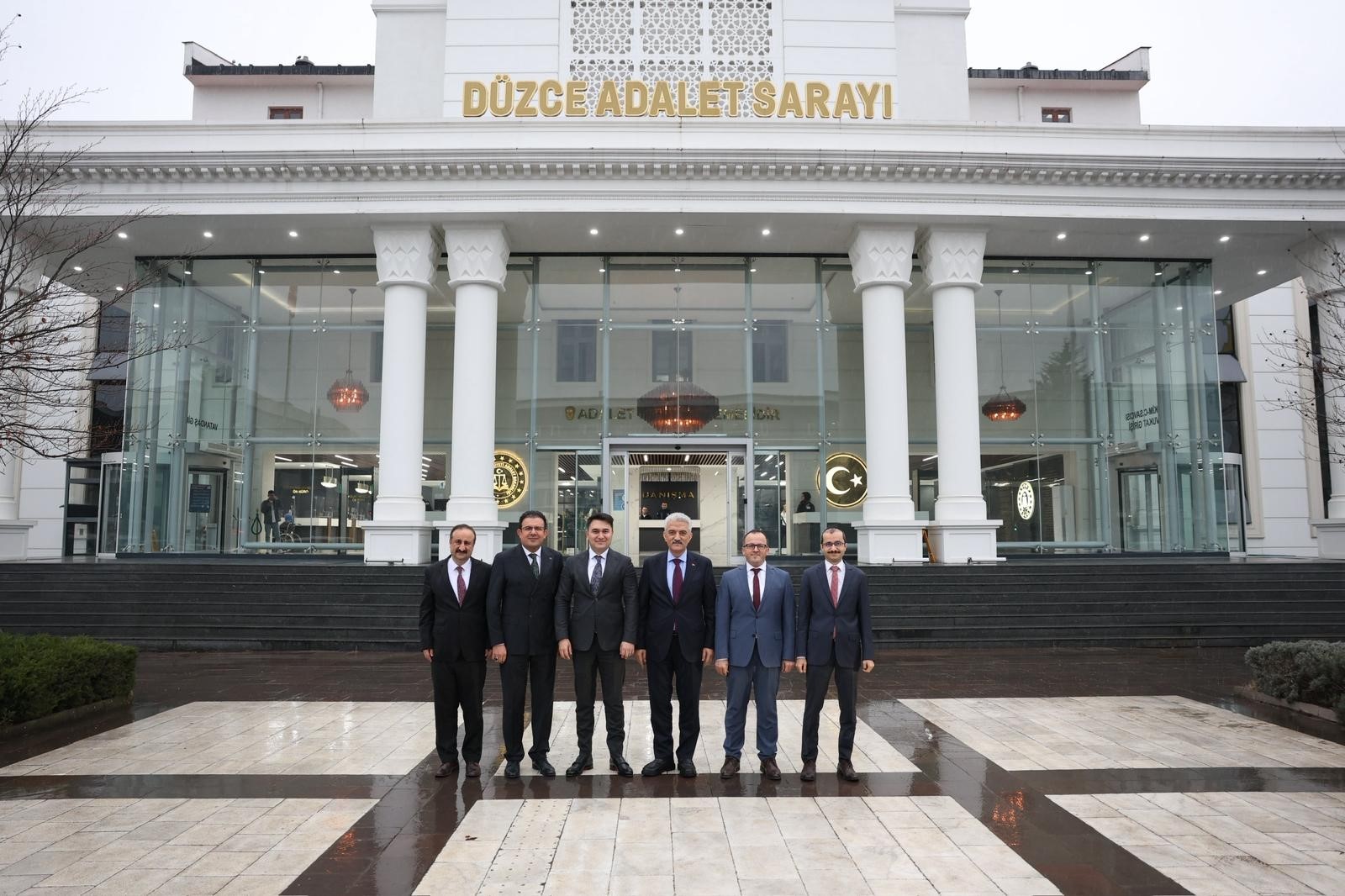 Vali Makas, Düzce Adliyesi'nin mevcut işleyişi ve yürütülen hukuki süreçler hakkında bilgi aldı. İki yetkili, suçla mücadele konusunda elde edilen başarıların, güçlü bir iş birliği ve koordinasyon sayesinde mümkün olduğunu teyit ettiler. Bu ziyaret, adliye ile yerel yönetim arasındaki diyaloğun güçlendirilmesini ve suçla mücadelede ortak stratejiler geliştirmeyi hedeflediğini ortaya koydu.