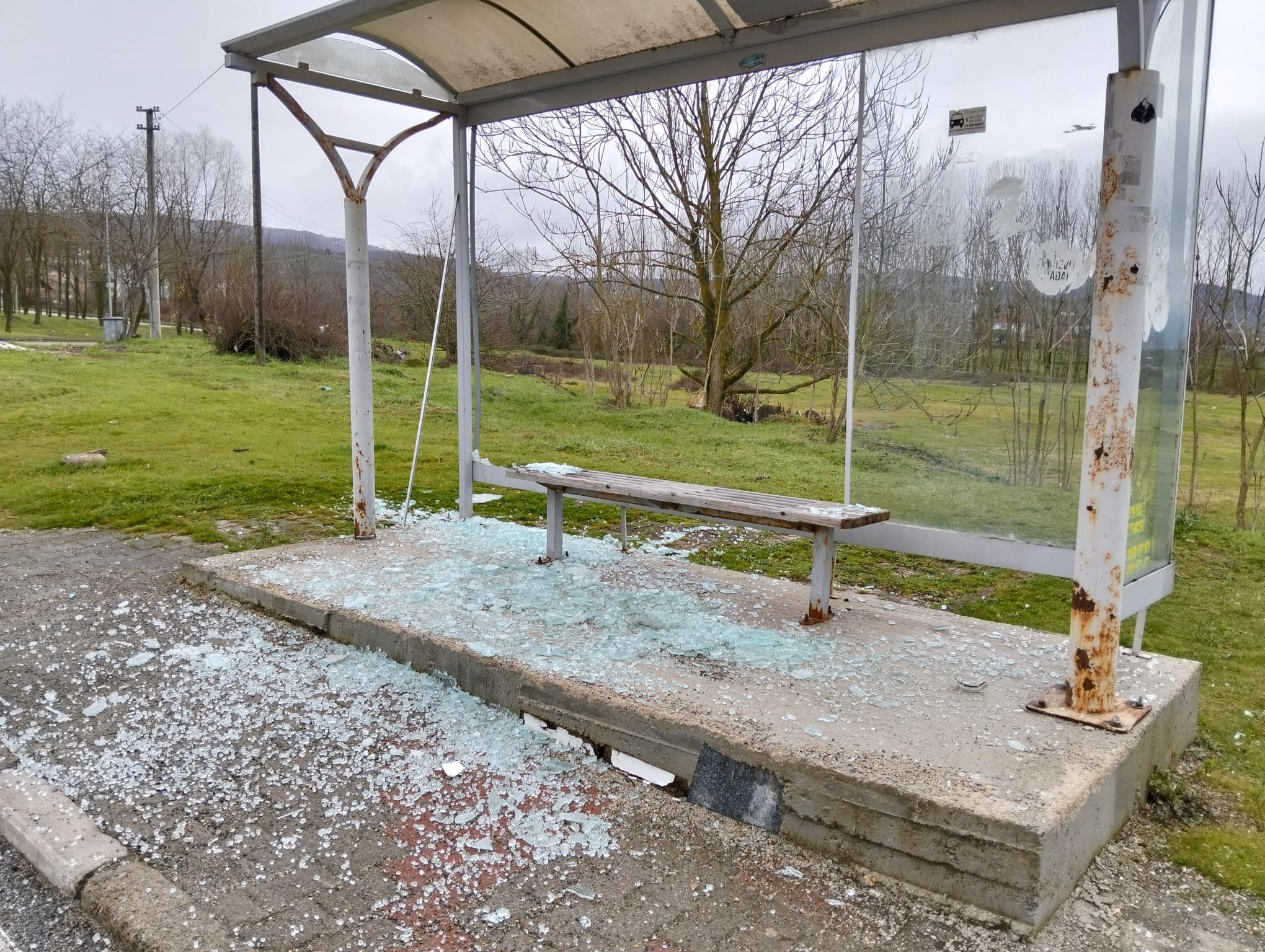 Düzce'nin Bahçeşehir Bölgesi 14. bölgede bulunan Hilmi Çilingir Huzurevi önünde bulunan otobüs durağının camlarına kimliği belirsiz kişi yada kişilerce zarar verildi.