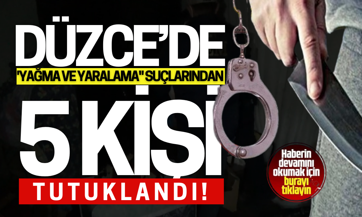 Düzce'de "nitelikli yağma, kasten yaralama" olayından gözaltına alınan 7 kişiden 5'i tutuklandı, 2 kişi adli kontrol şartıyla serbest kaldı.