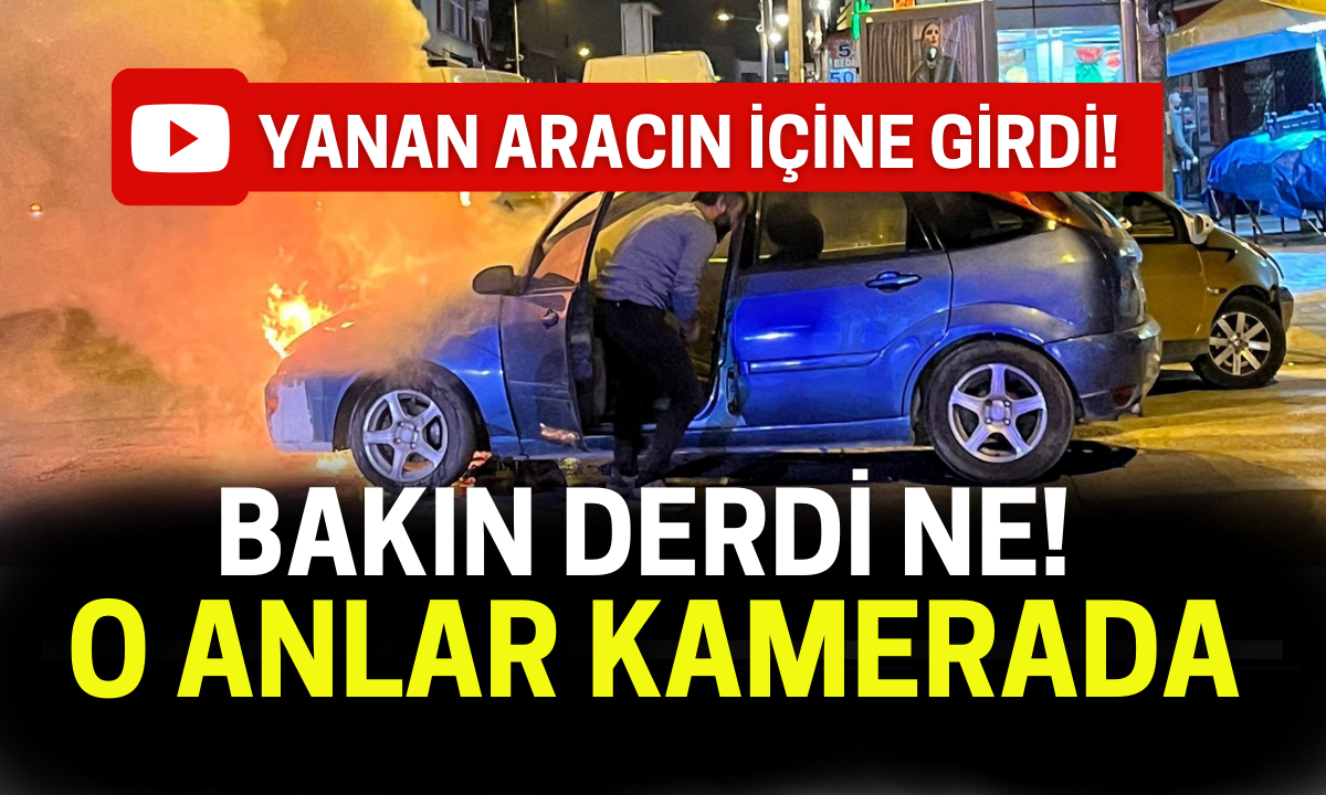 Yanan aracın içine girdi! Kurtarmaya çalıştı!