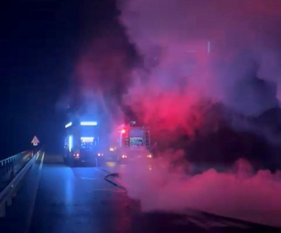 Dumanı fark edip aracını durduran tır şoförü, durumu itfaiyeye bildirdi. İhbar üzerine bölgeye polis, itfaiye ve karayolları ekipleri sevk edildi.