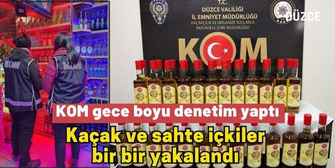 Düzce İl Emniyet Müdürlüğü KOM Şube Müdürlüğü ekipleri denetimlerine devam etti. Yılbaşı akşamında denetim yapan ekipler yakaladıkları sahte ve kaçak alkollere el koydu.