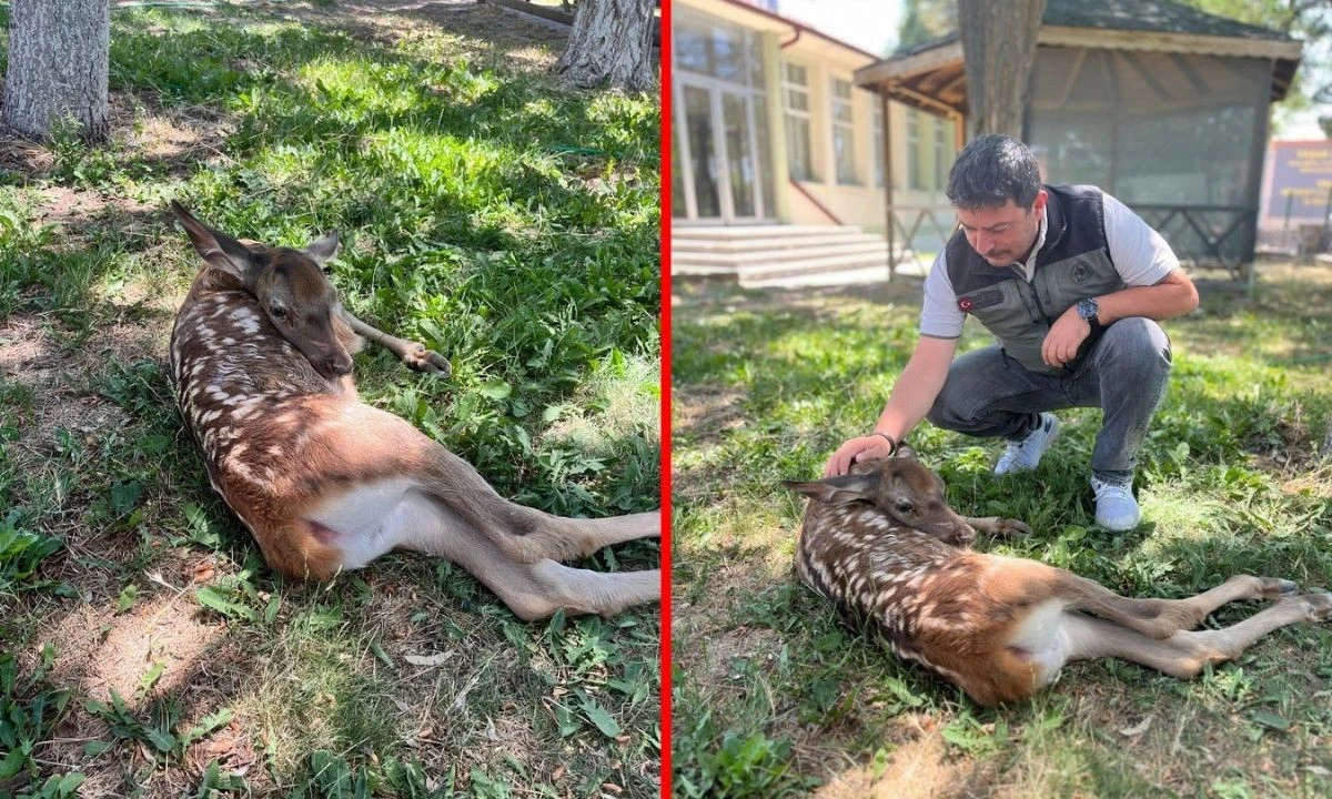 Edinilen bilgilere göre, Kıbrıscık Orman İşletme Müdürlüğü'ne bağlı toplu koruma ekipleri, ormanlık alanda gerçekleştirdikleri rutin koruma ve kontrol faaliyeti sırasında yaralı yavru geyiğe rastladı.