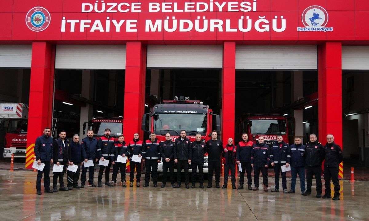 Gümüşova, Cumayeri ve Gölyaka Belediyelerinin İtfaiye teşkilatlarına düzenlenen 120 saatlik seminerde Temel İtfaiye Eğitimi ve 112 Acil Çağrı Merkezi Koordinasyonuna ilişkin bilgiler paylaşıldı, eğitimlerin sonunda katılımcılara sertifikaları verildi.