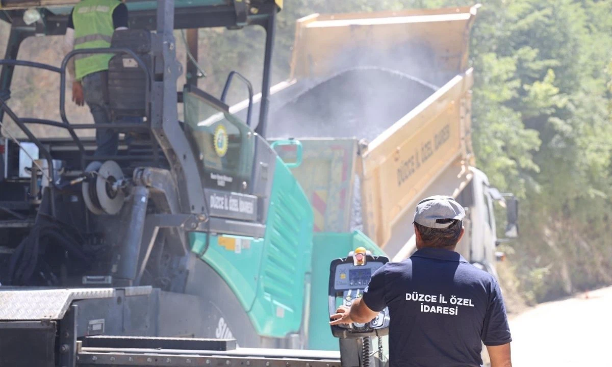 Düzce İl Özel İdaresi Yol ve Ulaşım Hizmetleri Müdürlüğü ekipleri tarafından, Yığılca ilçesine bağlı Asar ve Kırık köyleri arasında sıcak asfalt serimi çalışmaları aralıksız devam ediyor.