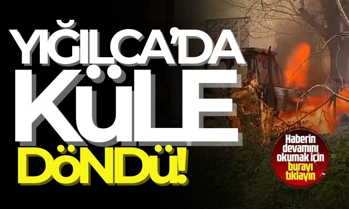 Düzce'nin Yığılca ilçesinde ahşap evde çıkan yangın, park halindeki traktöre de sıçradı.