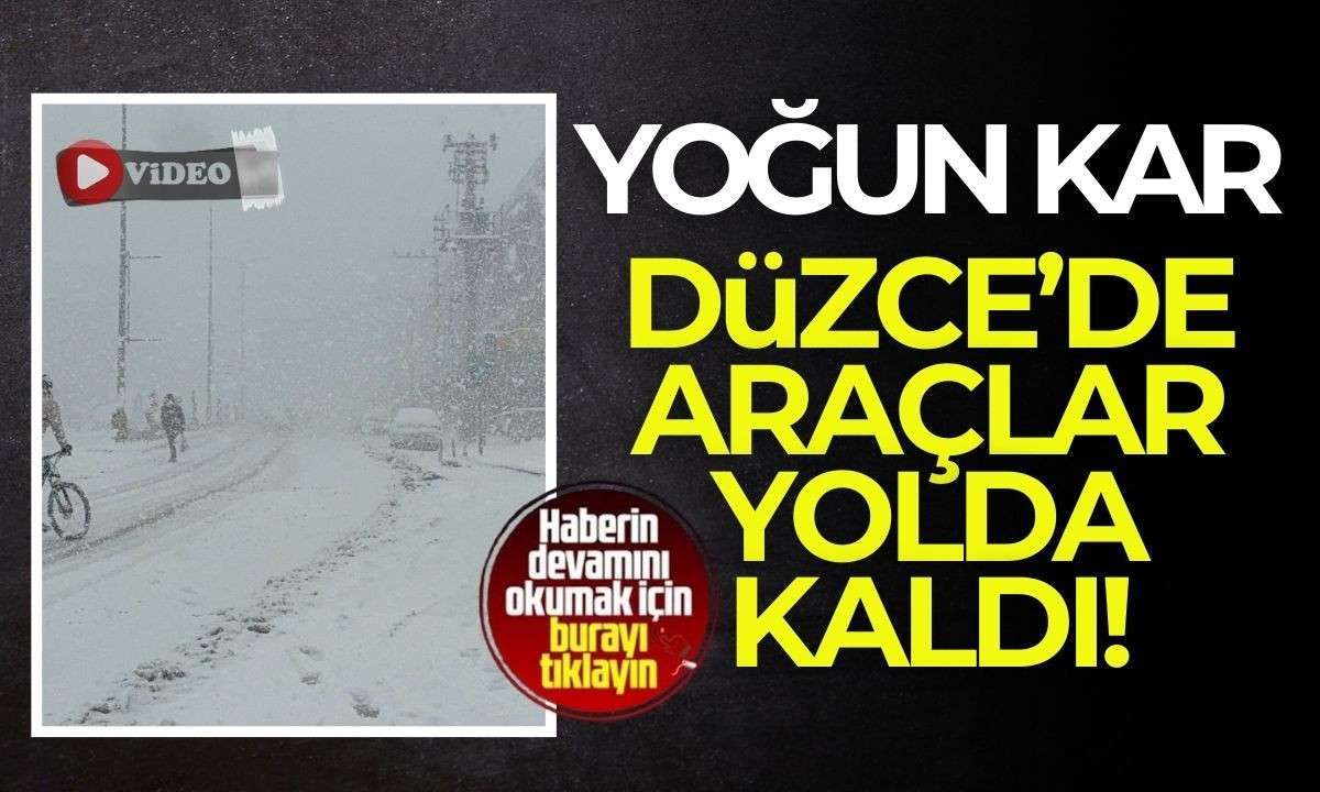 Düzce'de yoğun kar yağışı sebebiyle birçok araç yolda kaldı.