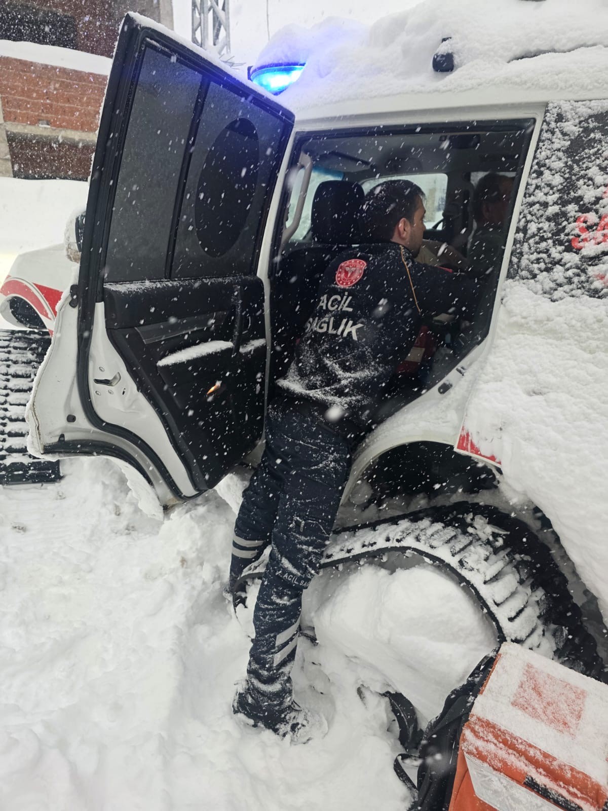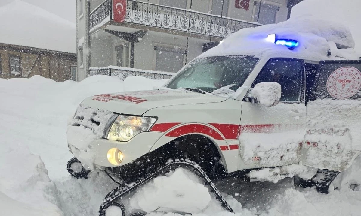 Düzce’de yoğun kar yağışında sağlık hizmetleri durmayarak paletli ambulanslarla sağlık vatandaşın ayağına gitti.