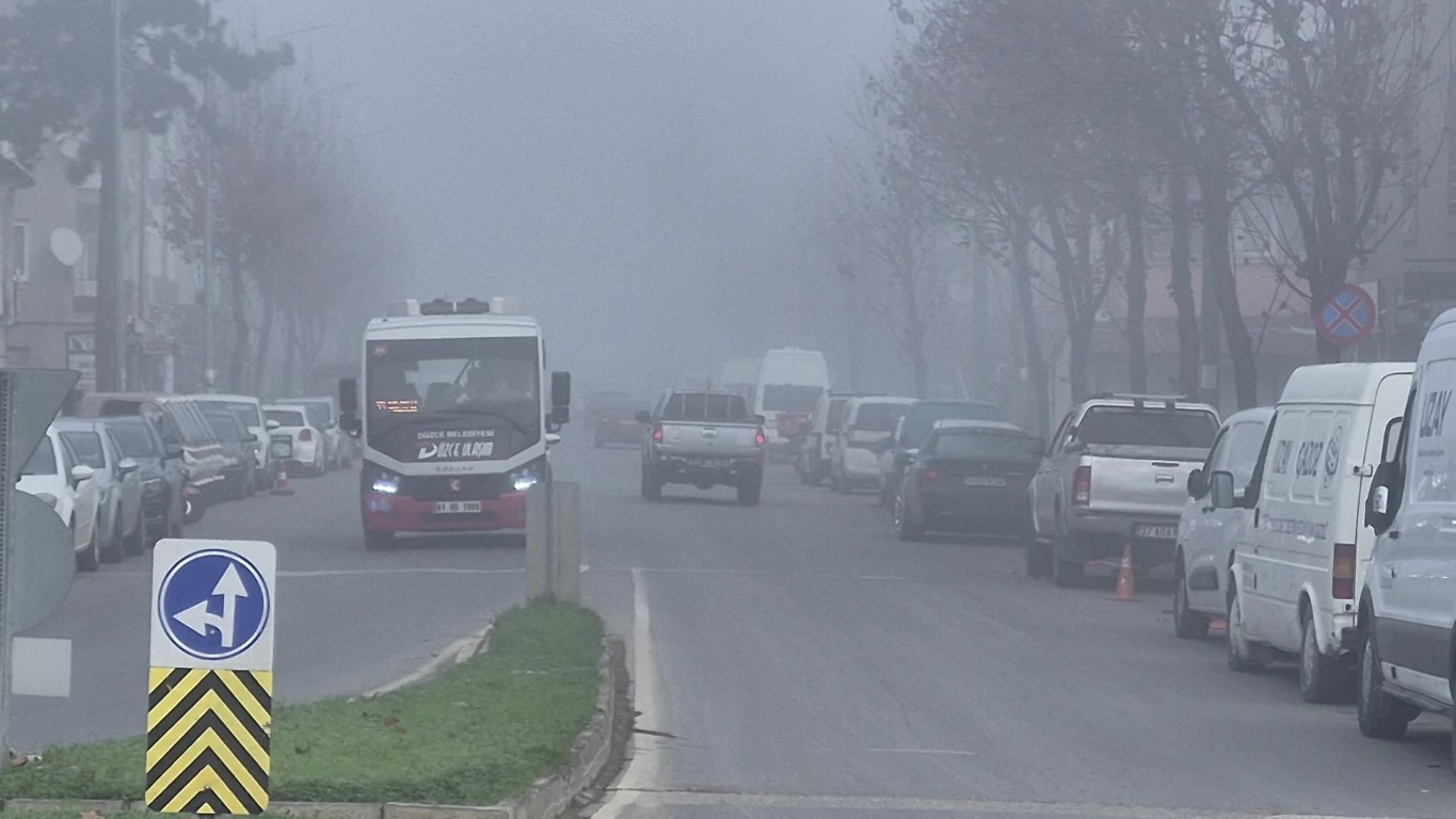 Düzce'de her sonbahar ve kış mevsiminde yaşanan sis, havaların soğuması ile birlikte yeniden şehir merkezini esir aldı.