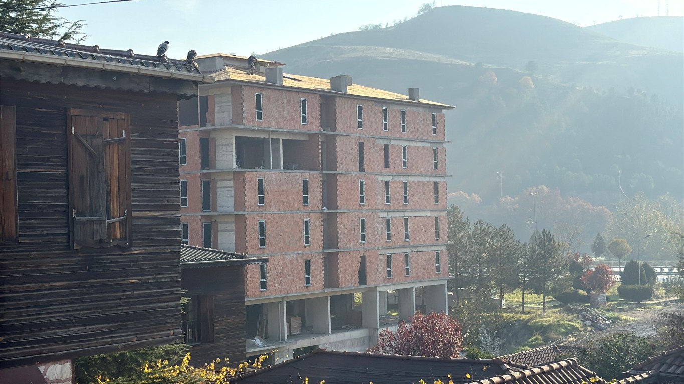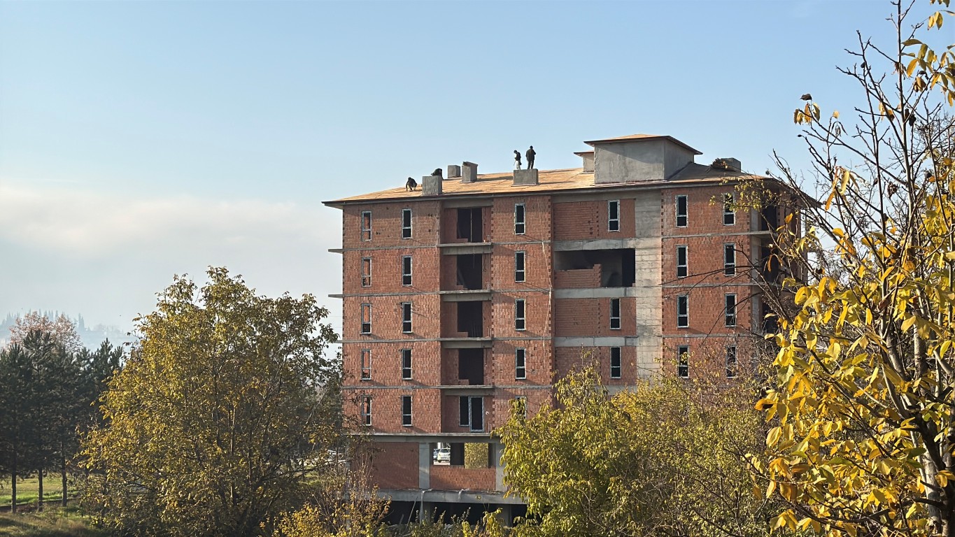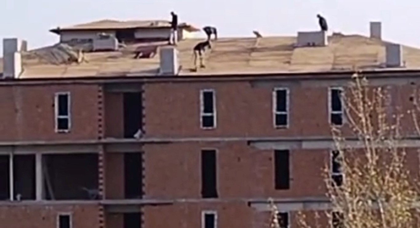 Karabük'te 6 katlı bir inşaatın çatısında işçilerin herhangi bir güvenlik önlemi almadan çalıştığı anlar cep telefonu kamerasına yansıdı.