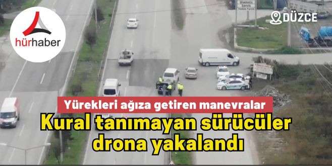 Düzce Bölge Trafik ekipleri, D-100 Karayolu üzerinde yaptıkları drone destekli uygulamada tehlikeli hareketler yapan sürücüler drone yakalandı.