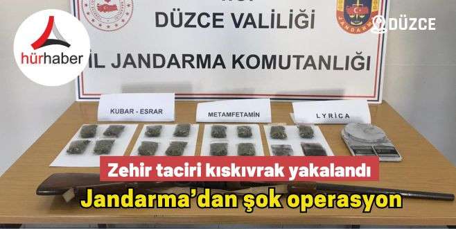 Düzce Cumhuriyet Başsavcılığınca uyuşturucu madde imal ve ticaretine yönelik yürütülen soruşturma çerçevesinde Jandarma KOM ekipleri Gölyaka İlçesine bağlı Zekeriya Köyü’nde A.A. isimli şahsın uyuşturucu madde sattığı istihbaratına ulaştı. Yapılan çalışmalar sonrası şahsın evine operasyon yapan Gölyaka Jandarma Komutanlığı ve Jandarma KOM ekipleri 5 gramlık paketler halinde 14 adet kubar esrar, 3 adet reçete ile satılan uyuşturucu hap ve bir miktar metamfetamin ele geçirildi.