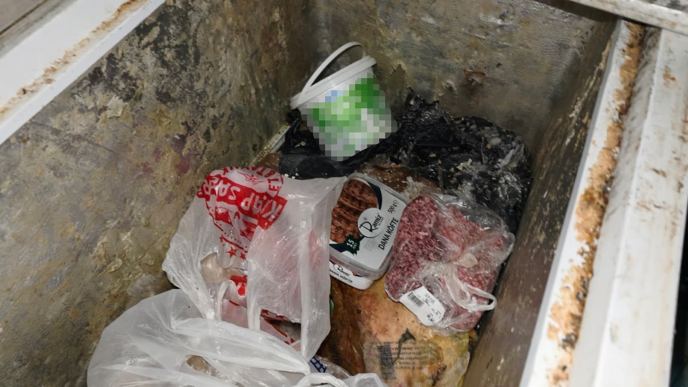 İş yeri imalat bölümünde yapılan incelemede bozulmuş ve kokmuş etler, küf ve pas oluşmuş ekipmanlar tespit edildi.