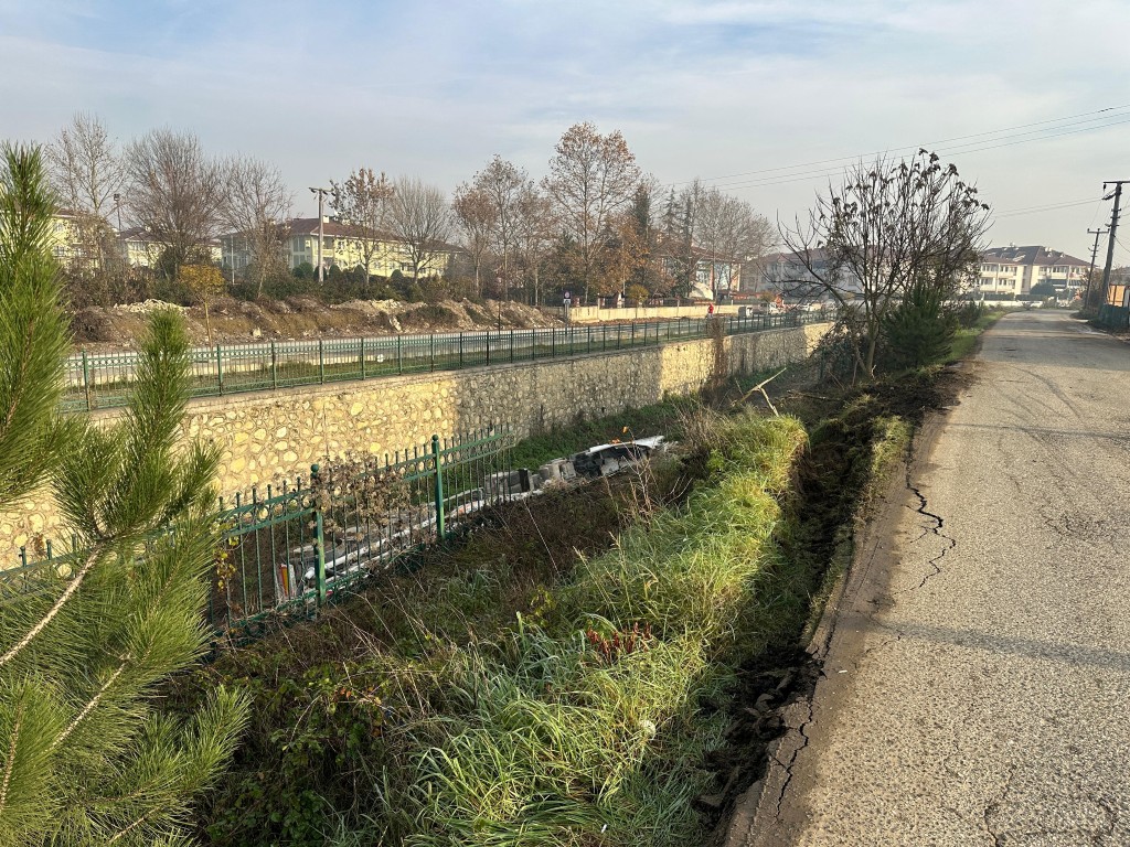 Sürücüsünün çalışma nedeniyle konulan dubaların kenarından geçmek için manevra yaptığı araç, kontrolden çıkarak yol kenarındaki dere yatağına devrildi.