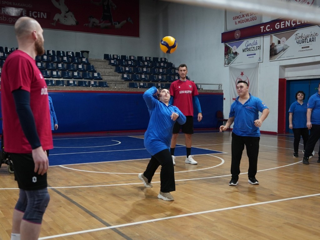 Özel bireyler, Konuralp Beyleri ile yaptıkları maçta doyasıya eğlendi.Düzce Belediyesi çatısı altında hizmet veren Kusursuz Kafe'nin özel çalışanları, Türkiye Voleybol Federasyonu Erkekler 1. Ligi'nde mücadele eden Düzce Belediyesi Spor Akademisi Voleybol Takımı'nın antrenmanına konuk oldu.