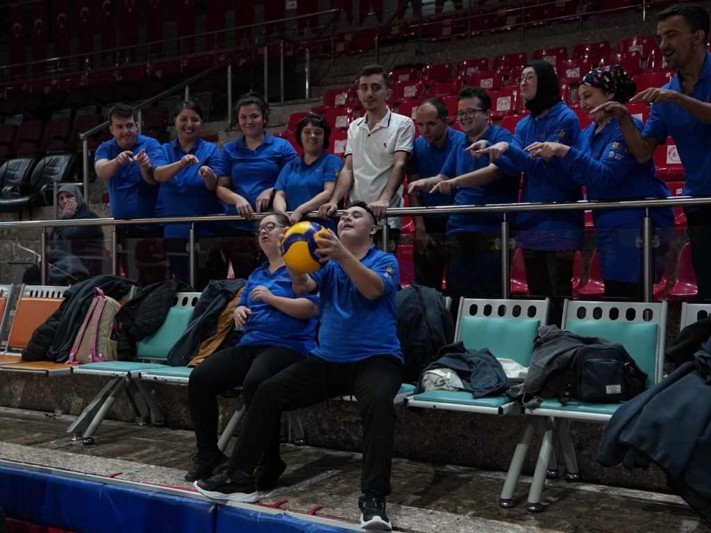 İlk olarak antrenmanı tribünden izleyen özel bireyler, Takım Kaptanı Alperen Aydın'ın voleybol topunu tribüne göndermesinin ardından parkeye inerek antrenmana katıldı.