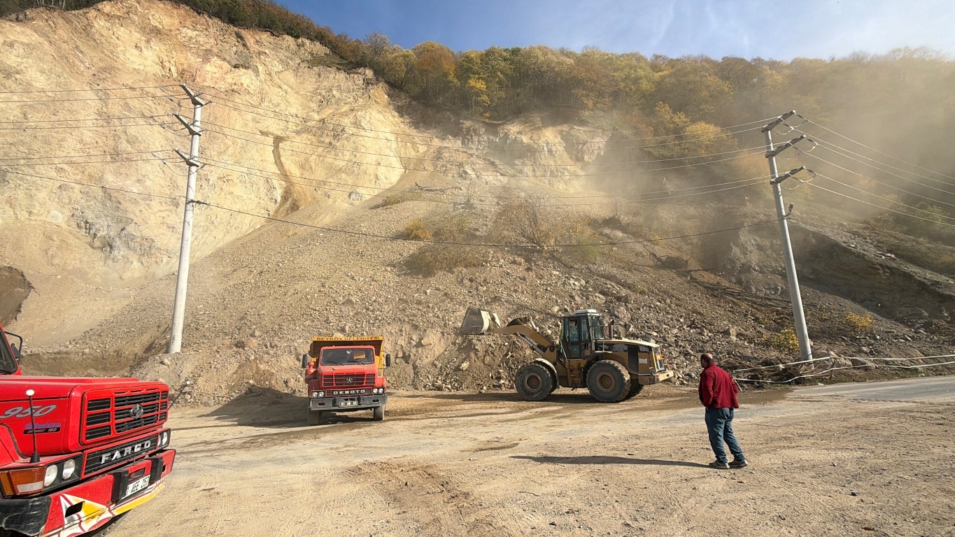 Yamaçtan kopan kaya parçalarının yola düşmesi üzerine güzergah, trafik akışına kapatıldı.