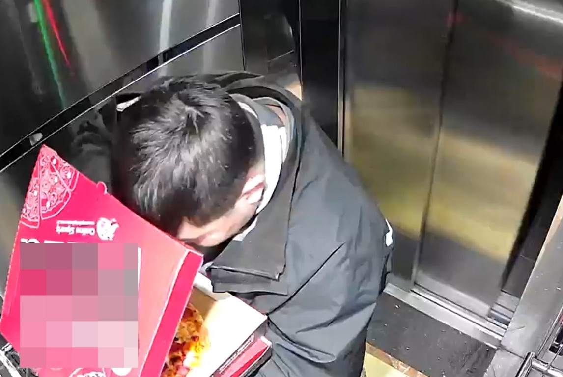 Durumdan şüphelenen Lermi, apartmanın güvenlik kamerası kayıtlarını izlediğinde kuryenin asansörde pizzanın iç malzemelerinden yediğini ve asansöre tuvaletini yaptığını gördü.Durumun ilgili firmaya bildirilmesinin ardından kurye S.M.'ye asansör temizletildi. Şikayet üzerine polis ekiplerince "Genel Ahlaka Uygun Hareket Etmemek" suçlamasıyla gözaltına alınan şüpheli, geceyi nezarethanede geçirdikten sonra ailenin şikayetini geri çekmesi üzerine serbest bırakıldı.