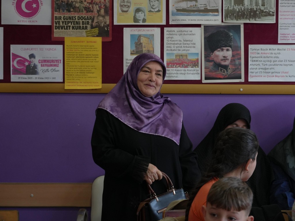 Okul yönetimi, öğrenciler ve Ergin ailesinin iş birliğiyle gerçekleştirilen sürpriz kapsamında; diyabete bağlı olarak yaklaşık 12 yıl önce görme yetisini kaybeden 56 yaşındaki öğretmenin annesi Ayşe Ergin, babası Fikret Ergin, kardeşleri Hasan, Fatma, Nurses ve yengesi Habibe Ergin ile eşi Aysel Ergin, dersin işleneceği sınıfta yerlerini aldı.
