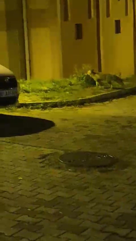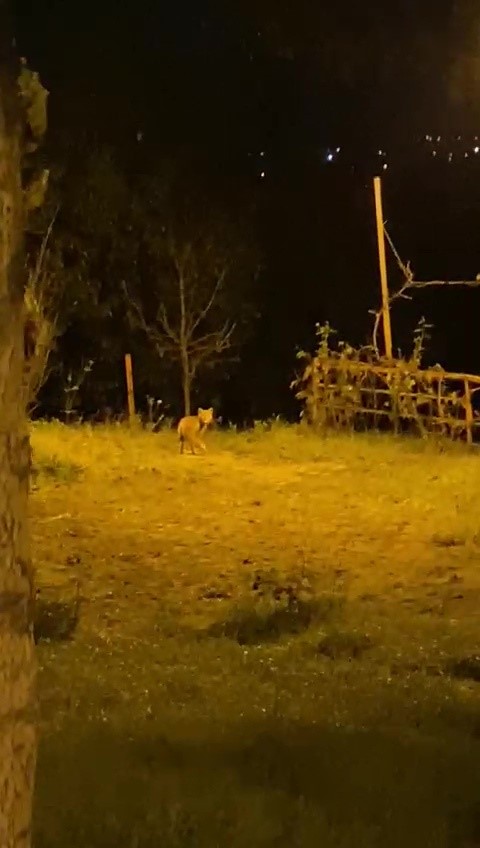 Akşam saatlerinde yiyecek aramak için şehre inen tilki, vatandaşın kamerasına takıldı. Uzun süre tilkiyi yanına çağıran vatandaşı gören tilki, paniğe kapıldı. Aradığı yiyeceği bulmayan tilkinin sağa sola kaçışması kediyi de korkuttu.